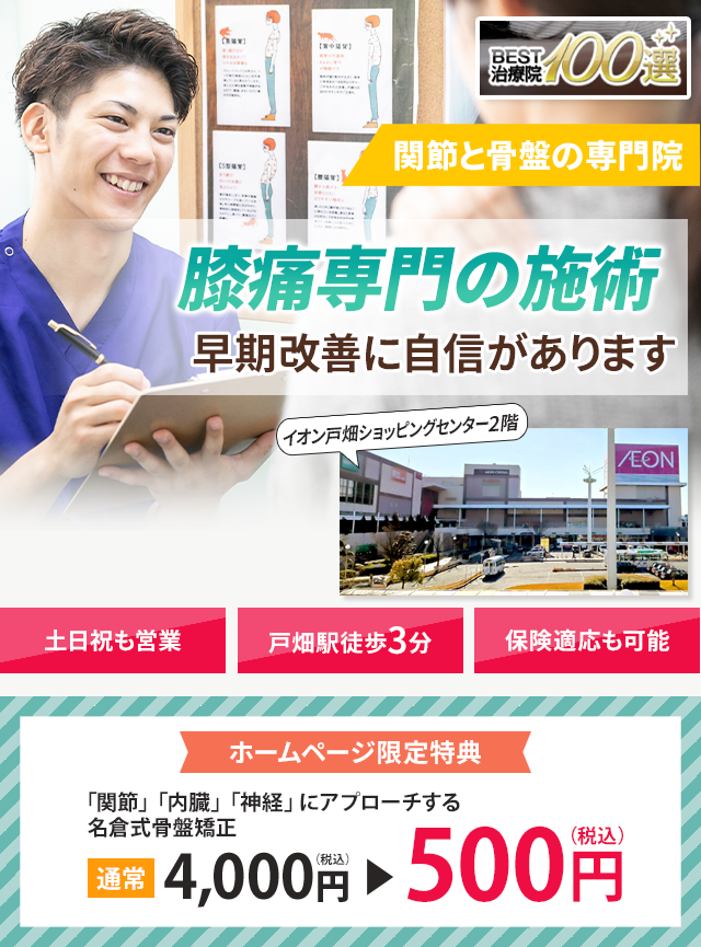 膝痛でお悩みの方は、ぜひ一度、名倉堂鍼灸院・接骨院 イオン戸畑院にご相談ください。経験豊富な整体師が、あなたの症状に合わせた最適な施術で、膝痛が起こりにくい体づくりをサポートいたします。