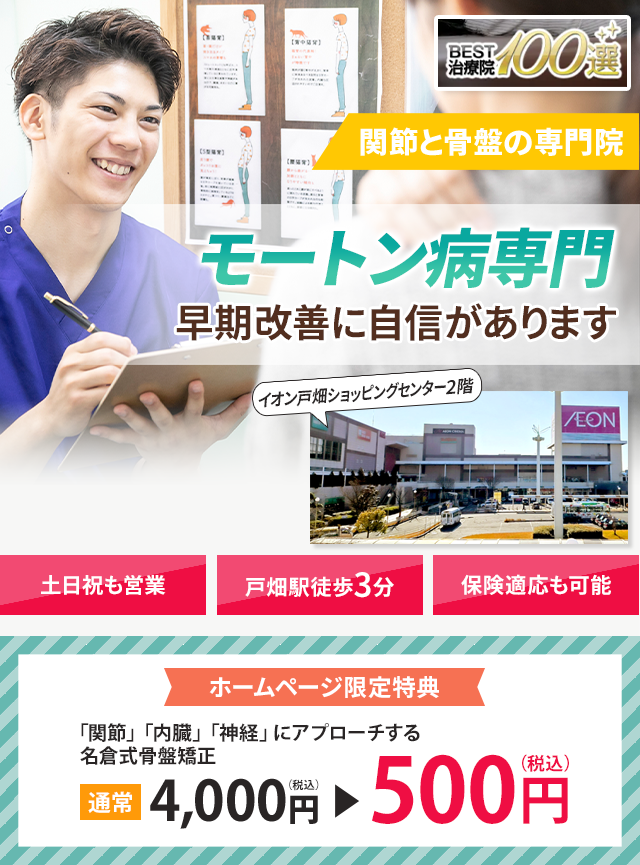 当院では、モートン病の原因を「骨盤・足関節の歪み」だと考えています。
